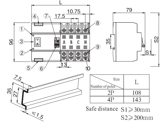 ASIQ dual power switch (hereinafter referred to as Switch) is a switch that can continue to supply power in case of emergency. The switch consists of a load switch and a controller, which is mainly used to detect whether the main power supply or standby power supply is normal. When the main power supply is abnormal, the standby power supply will start to work immediately, so as to ensure the continuity, reliability and safety of power supply. This product is specially designed for household guide rail installation and is specially used for PZ30 distribution box.