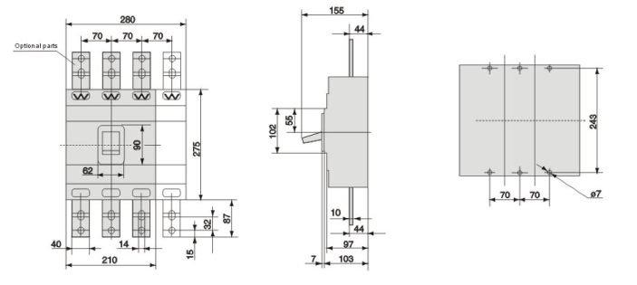 Frame size rated current:63A; 100A; 225A; 400A; 630A; 800A;